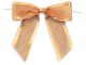 Sheer Organza Pre-Tied Bows with satin edge is a 4 1/2" single bow with 3 1/2" wings. The 6" wired twist ties allow easy attachment to any gift or cello bag.
