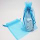 Pack of 10 Turquoise blue organza bags with satin drawstring cord (5" x 7")
