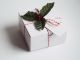 Pack of 10 white high Gloss Gift/favour boxes with hinged lid (13cm x 13cm x 8cm) with Red bakers twine, gift tags & artificial holly leaves with berries