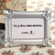 This place card/photo frame favour measures 7cm x 9cm and is made of durable silver poly resin with the regal Fleur di Lis design with rhinestone enhancements in each corner and a 4cm x 7cm window to display your photos.